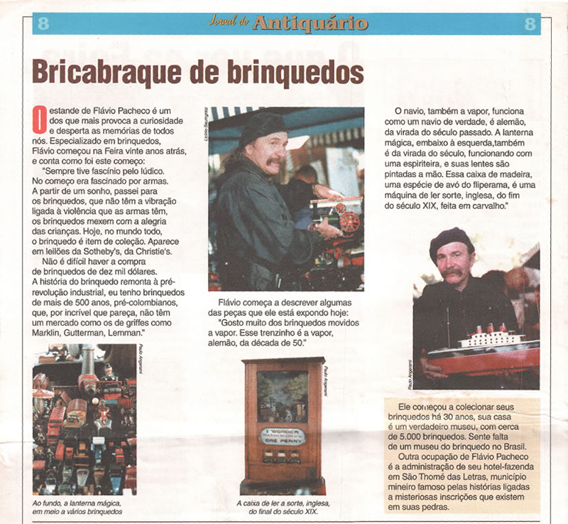 O antiquário e colecionador de brinquedos Flávio Pacheco conheceu São Thomé das Letras ainda no final da década de 60. Sua curiosidade se deu a partir do fato de ter visto quadros de Nicolau Facchinetti nos quais ele retratava a cidade e também devido a histórias e reportagens curiosas que chegavam ao seu conhecimento sobre a cidade mística. Na ocasião, o acesso a São Thomé era bem difícil e somente por estrada de terra. Mas ao conhecê-la foi amor à primeira vista...